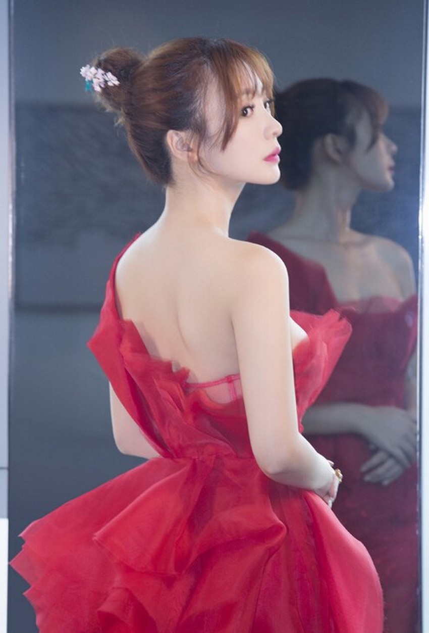 柳岩一袭红裙宛如玫瑰绽放 诠释优雅与性感的高级融合