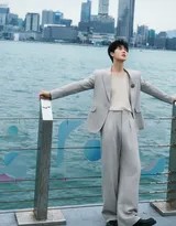 维港光影间的少年诗篇 李昀锐浅灰DIOR造型诠释港风新境