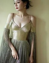 迪丽热巴鎏金薄纱礼裙写真 诠释夜幕星河下的优雅女神