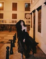 吴宣仪夜色撩人写真:黑纱漫舞光影间,嫣然一笑胜星华