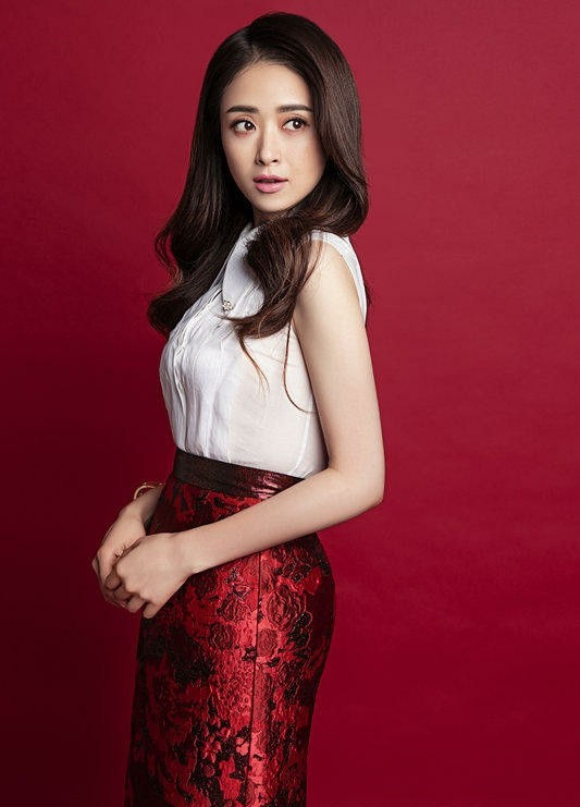 蒋欣白衫红裙写真演绎现代职场女性风范