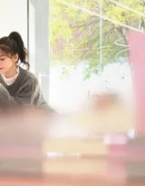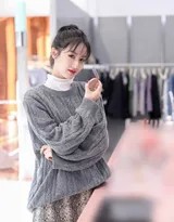 写真中,袁冰妍身着一件设计简约的针织衫,柔软的材质贴合身形,勾勒出恬静柔美的轮廓。浅色调的毛衣不仅凸显了她白皙的肤色,更与店内温暖的光线、原木色的装潢完美融合,营造出和谐统一的视觉感受。针织衫特有的纹理质感在镜头下被细腻捕捉,仿佛能触碰到那份属于秋日的柔软与温暖。这种穿搭既是季节的应景之选,也展现了袁冰妍低调而高级的私服品味。