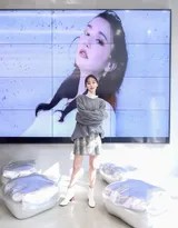 场景选择别具匠心。品牌服装店本身就是一个充满时尚元素与生活气息的空间。高低错落的衣架、精心陈列的服装、简洁的线条与柔和的灯光,共同构成了写真的背景。袁冰妍并非在刻意摆拍,而是像真正沉浸在购物与探索的乐趣中——她时而驻足细看衣物的细节,时而倚靠展架若有所思,时而面对镜头展露自然亲和的笑容。这种“在场感”让整组写真脱离了生硬的棚拍模式,多了几分生活写实与灵动气息。