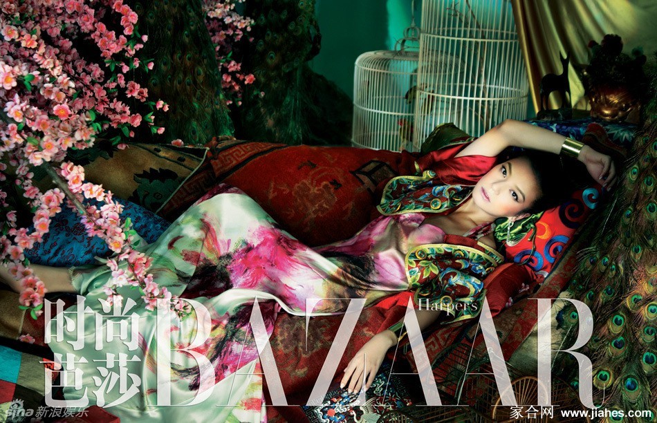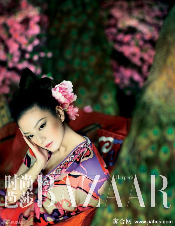这组照片的视觉基调,巧妙地融合了古典意蕴与现代审美。整体色彩浓郁而富有层次,背景中或虚化的桃红柳绿,或光影交错的幕布,都成为了衬托人物绝佳的画布。灯光师显然是此中高手,柔和的光线精准地勾勒出赵薇精致的面部轮廓,又在眼眸中点染出盈盈光彩,让每一张面孔都生动如诗。