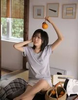 此外,写真的构图与细节也颇见巧思。构图在稳定中寻求变化,时而采用框架构图(如利用门框),将女孩置于视觉中心;时而采用对角线构图,引导观者视线,增强动感。特写镜头捕捉到发丝的光泽、细腻的肌肤纹理以及嘴角微扬的细节,而中远景则展现了人物与环境的关系,交代了完整的空间故事。女孩修长的双腿在短裤和特定姿态的衬托下,成为画面中优美的线条元素,但整体呈现健康、自然,毫无刻意之感,与“清新可爱”的主题浑然一体。身边的书本、画架、茶杯等日常物件,作为静物道具悄然入画,不仅丰富了画面层次,更暗示了女孩在家的闲暇活动——阅读、绘画、放松,让“居家”的概念更加丰满和可信。