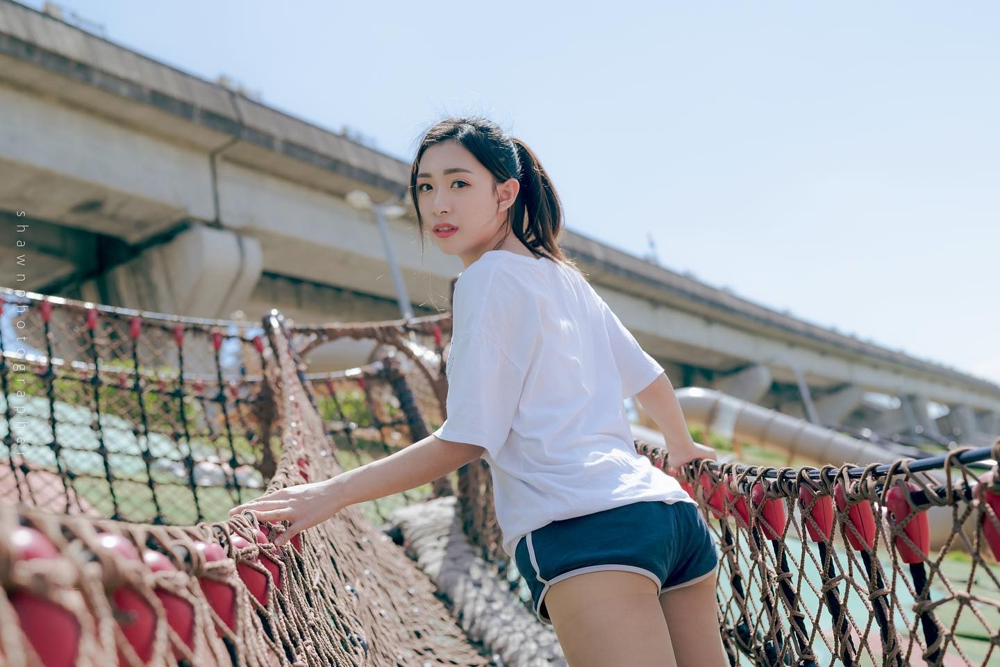 女孩的穿搭是简约美学的最佳注解。一件清爽的白色上衣,搭配经典的浅色牛仔短裤,构成了夏日户外的永恒经典。这种“无攻击性”的穿衣哲学,摒弃了冗余的设计,突出的是少女本身的身材线条与干净气质。牛仔短裤下,一双笔直的长腿包裹在近乎隐形的肉色丝袜中,这看似不经意的小心机,既修饰了腿部线条,使之显得更为光滑匀称,又增添了一抹含蓄的温柔感,与整体清纯的风格融合得恰到好处。脚上的一双休闲鞋,则保证了漫步林间的舒适与灵动,让整个造型在清新中透着活力。