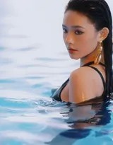 从时尚表现力来看,林允儿此次造型堪称突破。湿发造型在时尚界常被视为高级性感的象征,它剥离了多余装饰,回归到人体与元素的原始对话。林允儿以多角度演绎了这一主题:有的照片中,她倚靠池边,湿发贴面,眼神中透出朦胧沉思;有的则舒展身姿,如水中精灵般轻盈灵动。每一帧都像一幅油画,色彩柔和却情感浓烈。这种“纯欲风”并非单纯展现身体曲线,而是通过表情与环境的融合,传达出内在的情感张力——既有少女的羞涩,又有成熟女性的自信,这正是林允儿多年演艺生涯沉淀出的独特气质。
