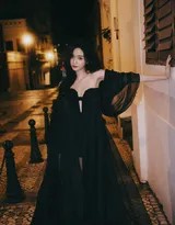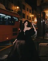 近日,一组吴宣仪的夜晚街拍写真悄然释出,迅速在社交平台引发热议。在这组充满氛围感的影像中,她以一袭黑色轻纱低胸长裙惊艳亮相,将都市夜晚的迷离与女星的优雅魅力完美交融,仿佛一位从夜色中款款走来的暗夜精灵。