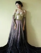 总而言之,迪丽热巴的这组鎏金薄纱礼裙写真,是一次成功的个人气质与高级定制时装的融合示范。它将黑色的神秘深邃、金色的璀璨华丽与薄纱的浪漫飘逸结合于一体。在迪丽热巴的诠释下,这套造型超越了单纯的服装展示,升华为一种氛围和故事的表达——那是关于夜晚的星河,关于古典的优雅,也关于一位现代女性自信而夺目的光芒。这不仅为她的时尚履历增添了浓墨重彩的一笔,也为所有欣赏者带来了一场难忘的视觉盛宴。